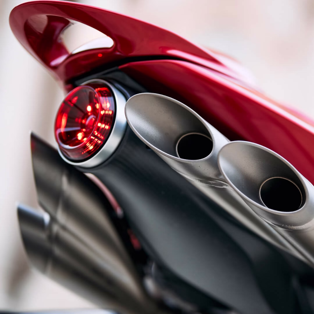 La nueva MV Agusta Superveloce 1000 Serie Oro es tanto una pieza de ensueño como una obra de arte. Sus elementos de estilo distintivos incluyen faros redondos que hacen referencia al pasado de MV Agusta, líneas con un desarrollo horizontal y la mejora estética que ofrece el uso de materiales como la fibra de carbono, el cuero auténtico, la Alcantara y el titanio. El diseño de la Superveloce 1000 Serie Oro rinde homenaje a la legendaria MV Agusta F4 750 Serie Oro, que se hace evidente en sus estilizadas llantas con forma de estrella y sus tubos de escape de titanio con 4 salidas. La atención al detalle más meticulosa asegura la armonía entre las formas, los materiales y el rendimiento. El pasado glorioso de MV Agusta renace en la Superveloce 1000 Serie Oro a través de la elección de su paleta de colores: Plata Ago, rojo shock perlado y oro ciclística.